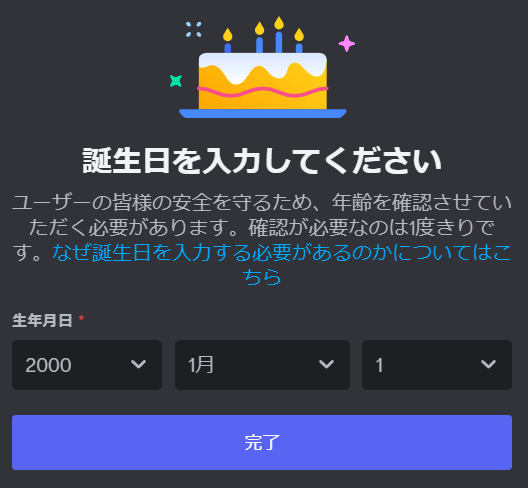 作成したアカウントは、今後ディスコードにログインするために必要になります。