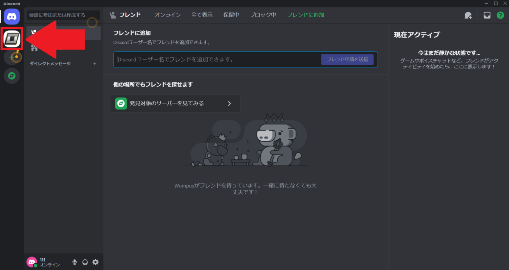 ディスコードアプリが起動した状態になります。