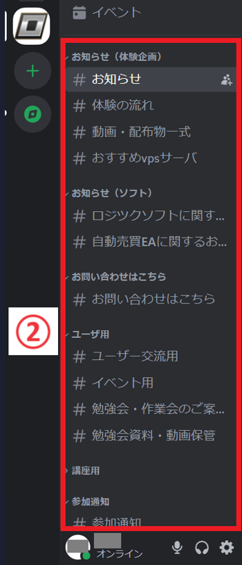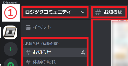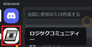 左上の「ロジツクコミュニティー」のサーバをクリックします。