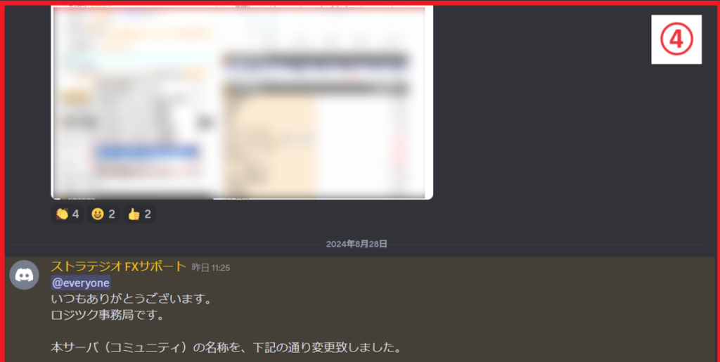 ④ チャンネルに書き込まれたメッセージ(下に行くほど新しいメッセージです)